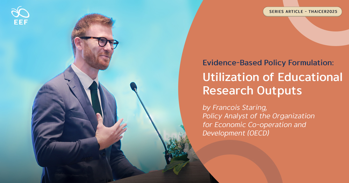At ThaiCER 2025, the featured lecture series titled “Evidence-Based Policy Formulation: Utilization of Educational Research Outputs” will focus on four pivotal topics. First, it introduces the OECD and articulates why educational research demands our attention. Following this, it explores how governments can support the development of knowledge infrastructure that underpins education. Third, it reviews the evolving roles of educators in this transformative landscape. Finally, it presents a set of guiding questions designed to stimulate dialogue and innovation during the Conference.