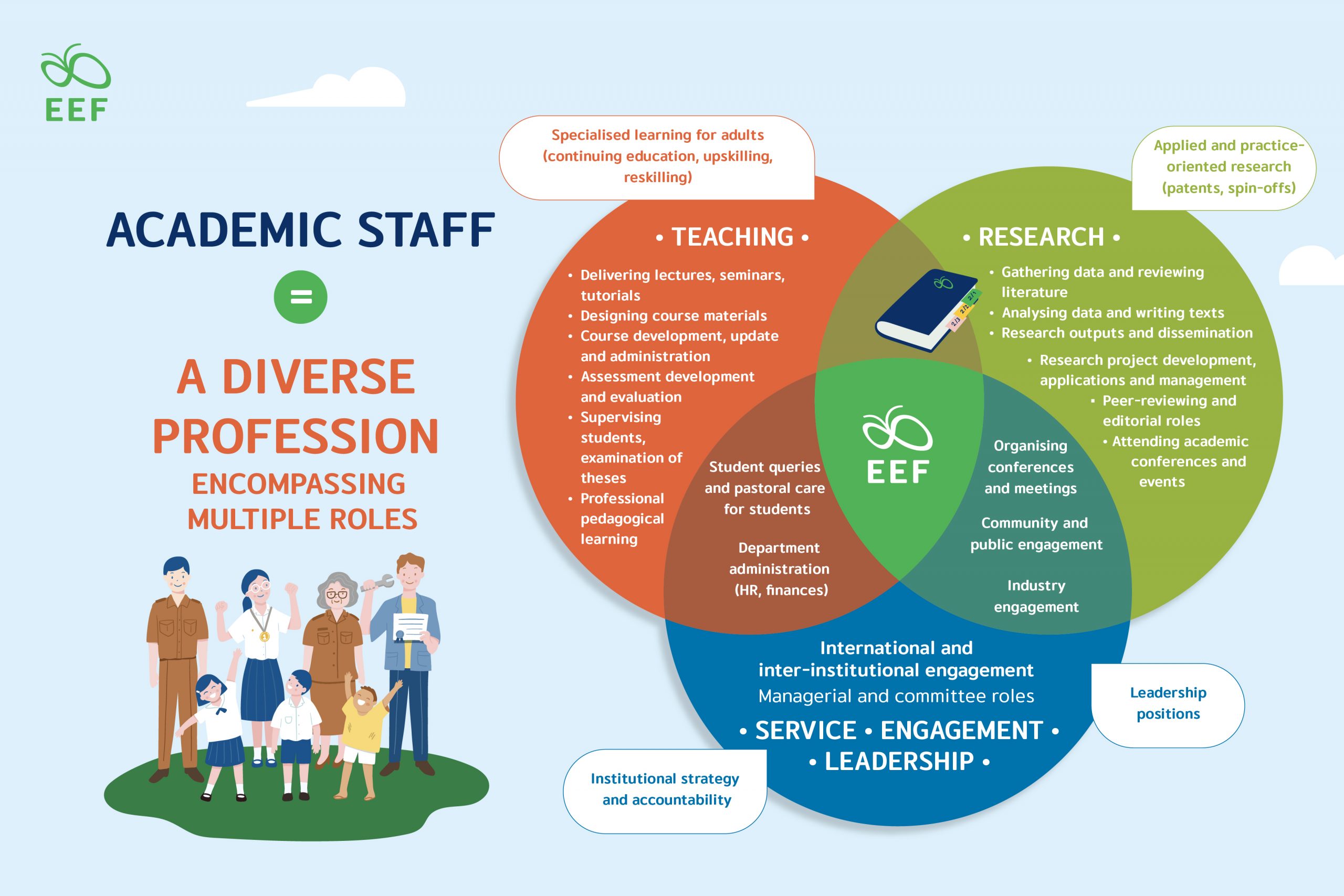 OECD, alongside ministries of education, organizations, research institutes, and formal intermediaries, studies who does what in educational research production and dissemination. Historically, educators were defined as multi-skilled professionals covering various roles. In the future, they will be recognized as multi-skilled experts with specific achievements.