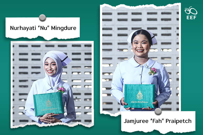 Looking back, Mingdure reflected, “This scholarship was my first glimpse of light along a very dark path. It allowed me to study, support my family, and dream beyond the limits I once saw. I cannot stop here; I must climb higher, become a nurse educator, and give back what was given to me—knowledge, guidance, and the chance to step into the light. Every child like me should know that the EEF’s High Vocational Innovation Scholarship can be their light too.” With equal resolve, Praipetch shared, “Graduating, I will work immediately and save every Baht to continue my nursing studies. I want to return to Trang, care for my family and grandparents, and support myself through education. The EEF’s High Vocational Innovation Scholarship has eased our burdens and allowed me to save for the future. I hope this initiative continues, so that others like me can prove that determination and courage make anything possible.”