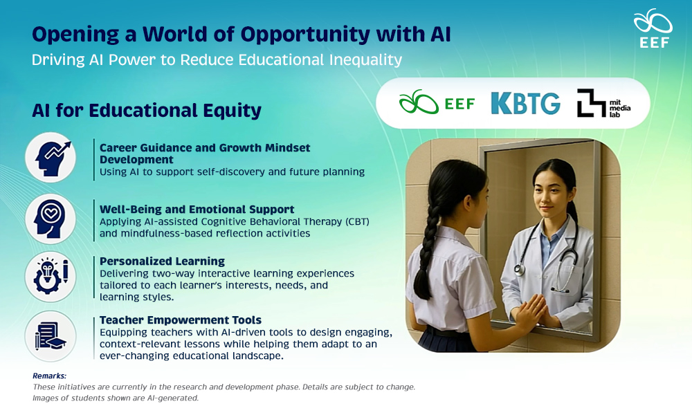 While collaboration between the public and private sectors, he added, is vital for AI exploitation, continuity of support is what turns ambition into impact. “EEF can plan one-year projects—or three- and five-year strategic plans—and see them through. With such continuity, success becomes predictable, and confidence grows. Stability, I believe, is the truest foundation for Thailand to compete—not just with others, but with our own potential.”