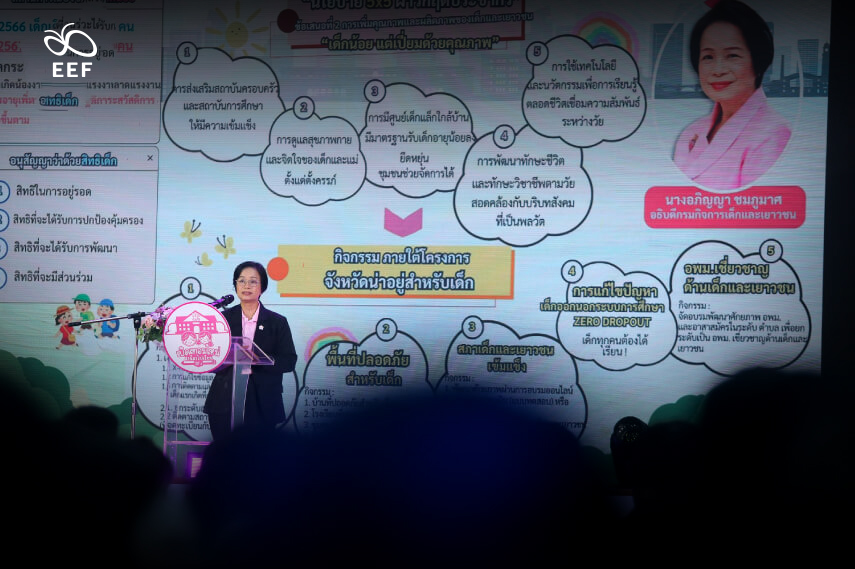 Yet, that choice cannot last without safety. For MSDHS Permanent Secretary Anukul Peedkaew, protection is non-negotiable. It is not children who must adapt to systems, but rather systems that must adapt to children. Safety and dignity are rights, not privileges. Across the media, the cost of neglect is painfully clear: in 2024 alone, over 900,000 children were found missing from the educational system, and of these, 28% were below compulsory schooling age (Grade 1-9), 40% within it, and 32% had aged out. Behind these numbers lie real children left vulnerable to systemic failure—be it abuse, abandonment, or improper care. To counter this, MSDHS in collaboration with 10 key agencies has been driving social welfare reform at the provincial level to protect the most underprivileged and marginalized. “Education, protection, and the chance to grow—every child deserves them all,” stressed the Permanent Secretary, “and we are not offering charity; we are restoring rights.” Protection has now extended to every space a child inhabits, reshaping them into safe, inclusive environments for a child-friendly future.