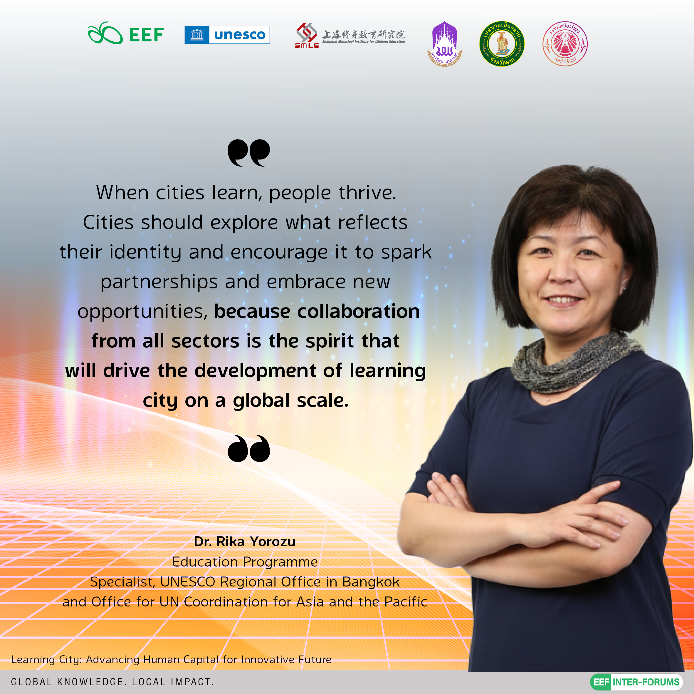 Throughout the webinar, there is a consistent theme in the experiences of Shanghai, Lamphun, and Tak: learning cities are created by people, local strengths, and collaboration. As cities change their functions, the webinar highlighted the urgent need to align human development with rapid urban development. To do so, local cultures, digital innovation, and strong governance must be integrated to make learning accessible, which would help address economic, technology and social challenges.