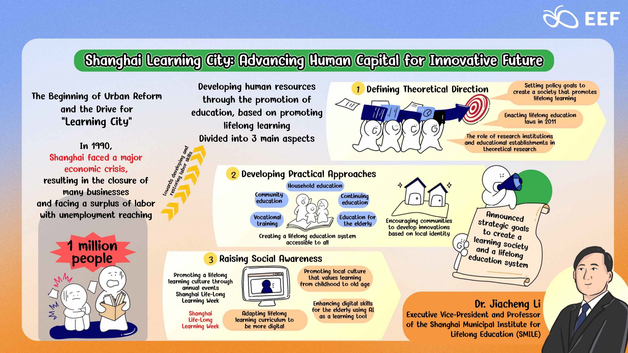 Now, sixteen districts in Shanghai are focusing on economic and financial trade, and the city is aiming to develop into a sustainable learning city,” Dr. Li explained.