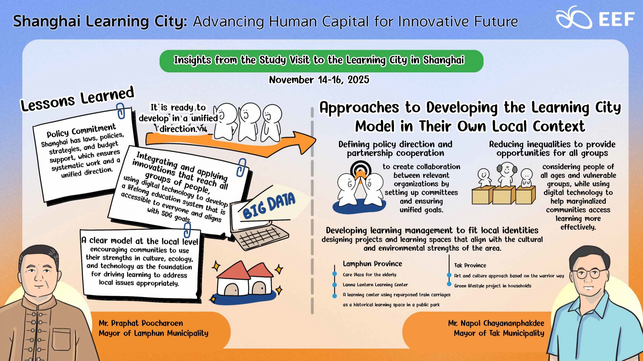 Therefore, on November 25, 2025, the Equitable Education Fund (EEF) Thailand organized an online seminar titled “Shanghai Learning City: Advancing Human Capital for Innovative Future” to discuss how cities can grow together with human development.