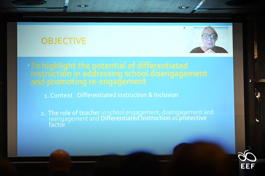 From Canada, Dr. Isabelle Nizet emphasized the role of inclusive teaching and strong teacher–student relationships as critical protective factors against dropout, supported by appropriately used AI tools. “Teaching approaches that respond to individual differences through inclusive classrooms, diagnostic assessment, and individualized learning plans serve both to prevent dropout and to re-engage learners across all groups,” said Dr. Isabelle.